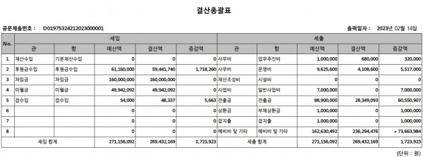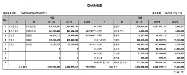 2022년 충북사회봉사회, 충북육아원 결산보고