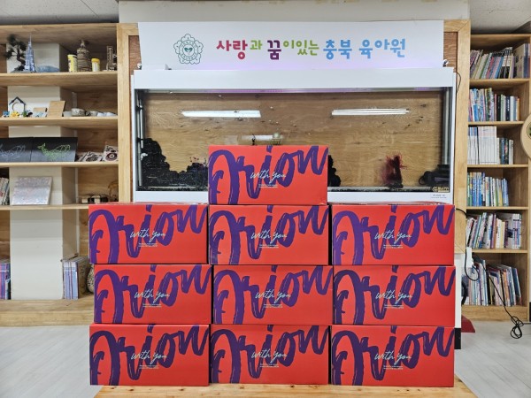 오리온에서 어린이날을 기념하여 아동을 위해 과자박스를 후원해주셨습니다.