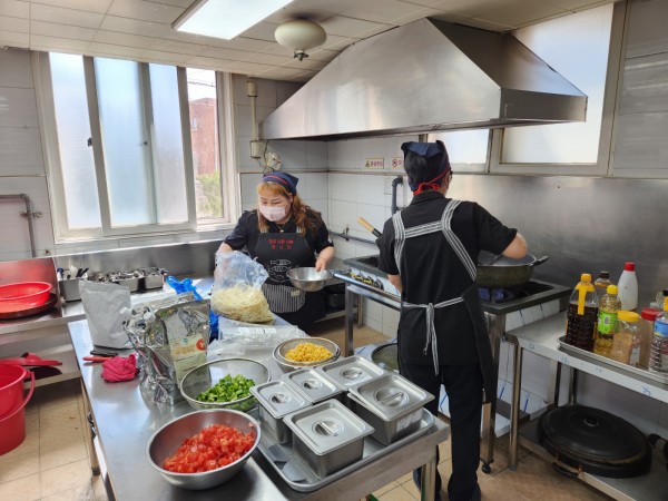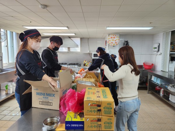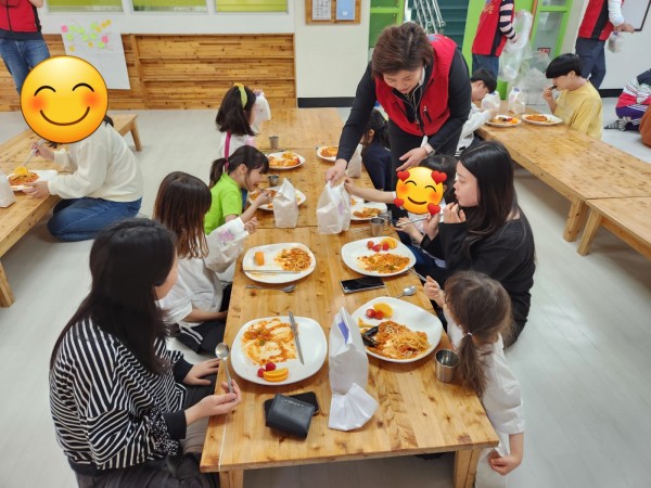 청주사랑나눔봉사단에서 점심식사(스파게티, 꼬마김밥, 감자튀김)와
