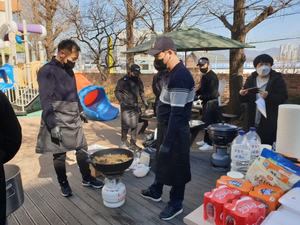 LG화학 동아리에서 아이들에게 직접 간식(떡볶이, 오뎅, 만두, 찐빵)을 만들어주시고