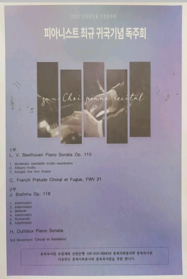 피아니스트최규 귀국기념 독주회로 마련된 수익금을