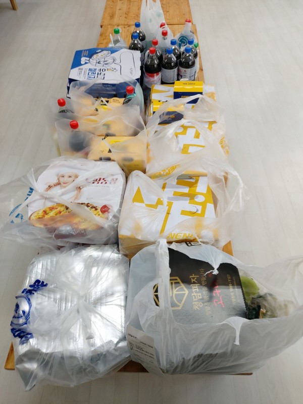 초아봉사단에서 테이블과 간식(치킨, 피자) 후원해 주셨습니다.
