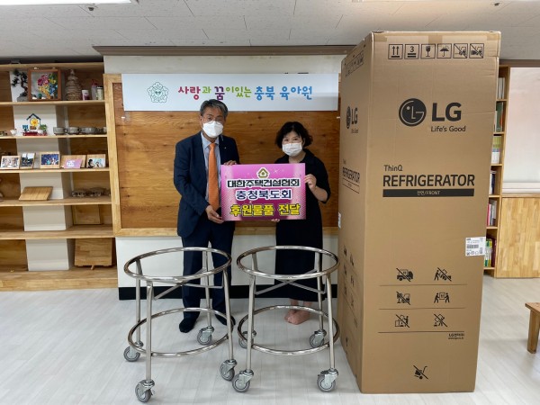 대한주택건설협회 충청북도회에서 추석 후원물품으로 식당에 필요한 소쿠리 운반카 2대와 냉동고를 후원해주셨습니다.