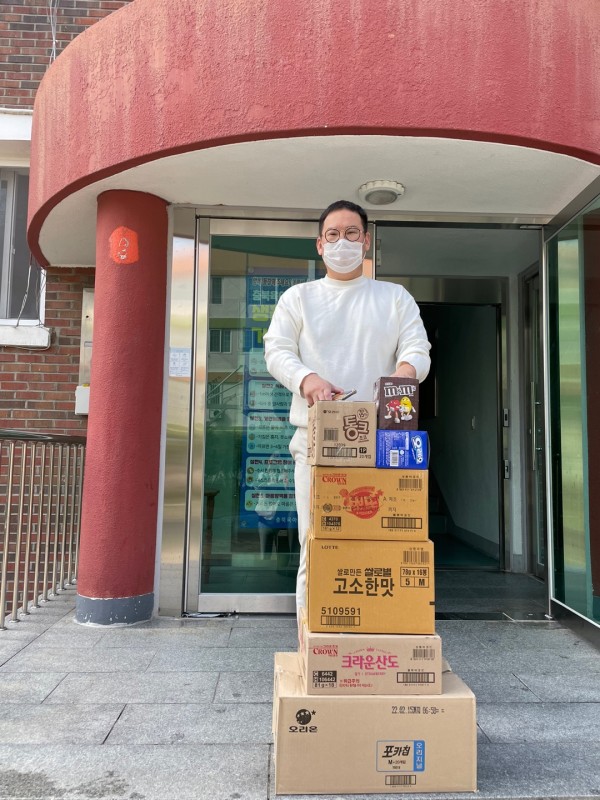 강*후원자님께서 아이들이 좋아하는 맛있는 과자 간식 후원차 방문 해주셨습니다.