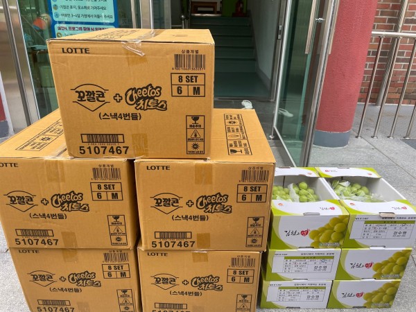 청주시의회에서 추석 맞이 아동 간식으로 아이들이 좋아하는 스낵류와 샤인머스캣 후원해주셨습니다.