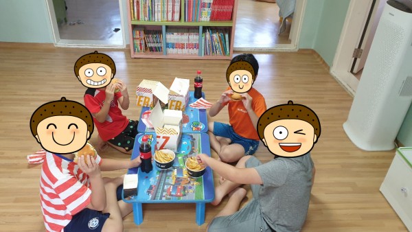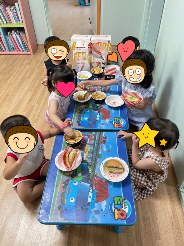 육아원 아동들은 수제버거와 감자튀김을 맛있게 먹으며 즐거운 오후 간식 시간 보냈습니다. 감사합니다.