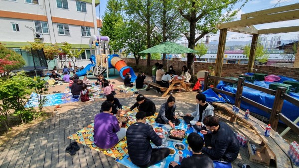 맑고 화창한 일요일 LG화학 추억을 담는 사람들 동호회에서 우리 아동들을 위해 삼겹살 파티를 해 주셨습니다.