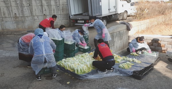 이른 아침부터 김치를 맛있게 버물려 주셨습니다.