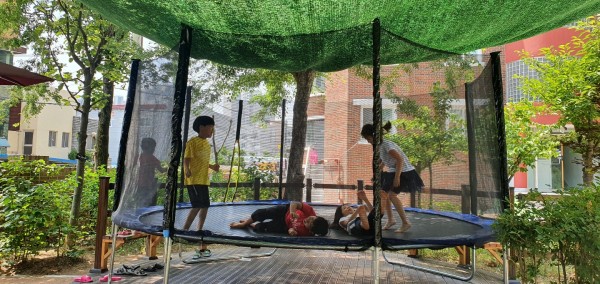 트렘플린에서 신나게 놀고 맛있는 팝콘도 만들어 먹으며 코로나19로 쌓인 스트레스를 확~ 날려버리고 있답니다.