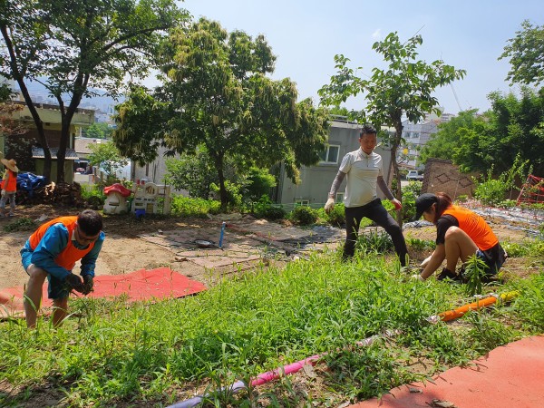그리고 햇볕이 쨍쨍 내리쬐는 무더위에도 우리 원의 화단과 숲 속 놀이터 잡초제거 작업을 해 주셨습니다.