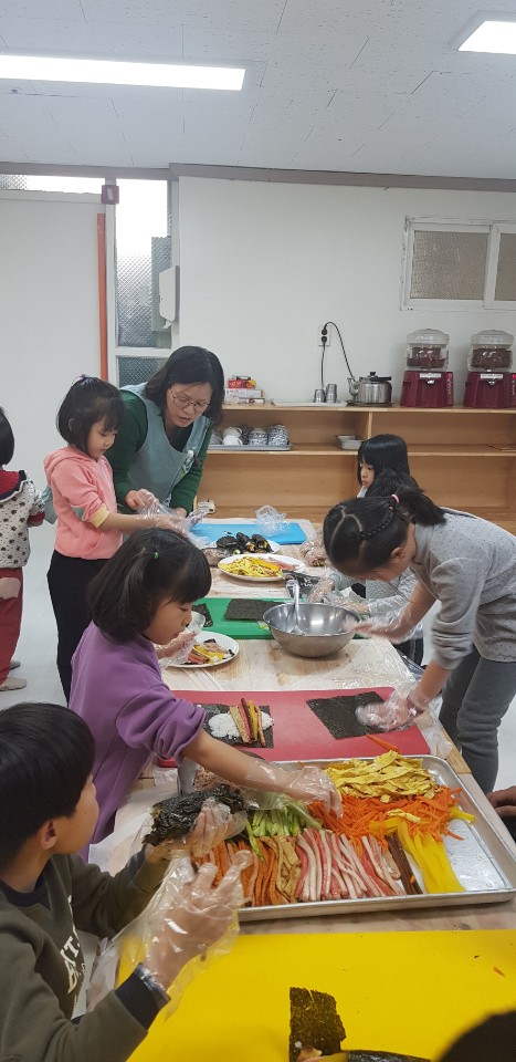 돌돌돌 맛있는 김밥도 만들고 바삭한 치킨으로 점심식사를 함께 하며 즐거운 시간을 가졌습니다.