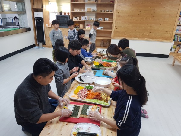 봉사단 회원님들과 우리 아동들이 함께 돌돌돌 김밥도 말고, 뜨끈한 어묵탕과, 매콤달콤한 떡볶이, 예쁜 색깔의 주먹밥도 만들며 행복한 시간을 보냈습니다.