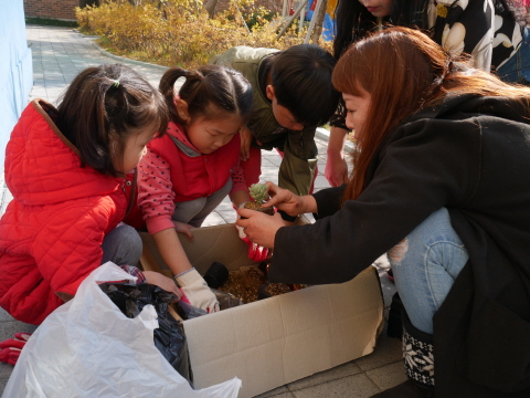 우리 아동들과 회원님들이 함께 화단정리도 하고 예쁜 다육이 분갈이도 하며 놀이같은 일을 하고,