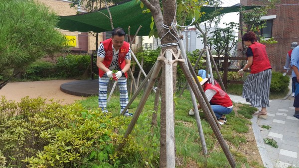 오후 2시부터 방문하여 폭염이 기승을 부리는 무더운 날씨에도 숲속놀이터 제초작업을 시작으로 흥미로운 마술공연도 해 주시고