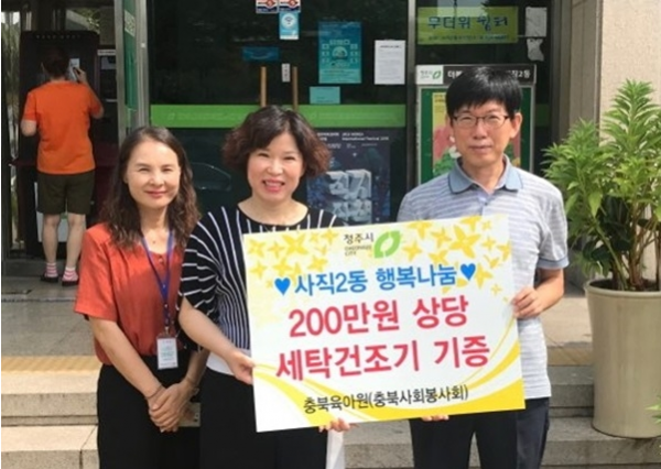 8/11일 사직2동 주민센터(동장 이종철)의 연계로 익명의 독지가로부터 세탁건조기와 미니 세탁기를 후원받았습니다.
