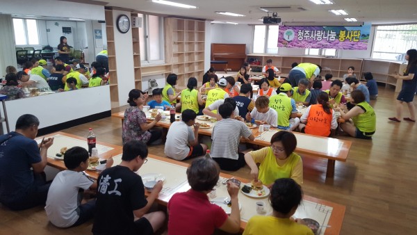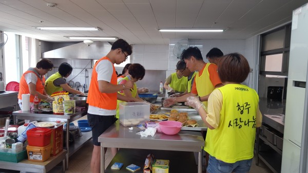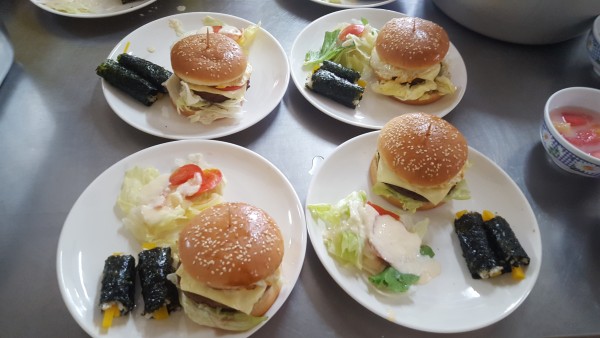 8/12일 매월 둘째주면 어김없이 우리 원을 찾아주시는 사랑나눔 봉사단(회장 김필기) 회원님들이 미용봉사와 함께 맛있는 햄버거와 미니 김밥을 점심으로 만들어 주셨습니다.