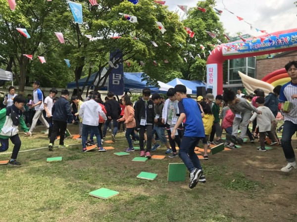 육아원의 초등부 아동들이 참여해서 오전에는 체육대회를 하고
