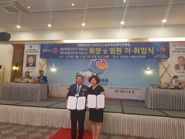6월 21일 국제로터리3740지구 청주와우로타리클럽(회장 채희주)과 우리 충북육아원(원장 채근숙) 두 기관의 새로운 인연을 위해 협약체결을 하였습니다.