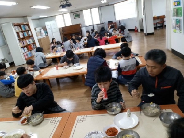 아파트정보카페 봉사자분들께서 새해 첫달이라고 삼색전을 만들고 떡국을 끓여 아이들과 행복한 점심식사를 하였습니다.