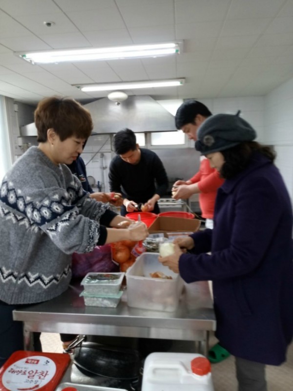 매달 첫째주 토요일 저희 육아원에 점심식사를 후원해 주시는 상상밴드 봉사자분들께서 맛있는 닭볶음탕과 장조림으로 점심식사를 준비해 주셨습니다.