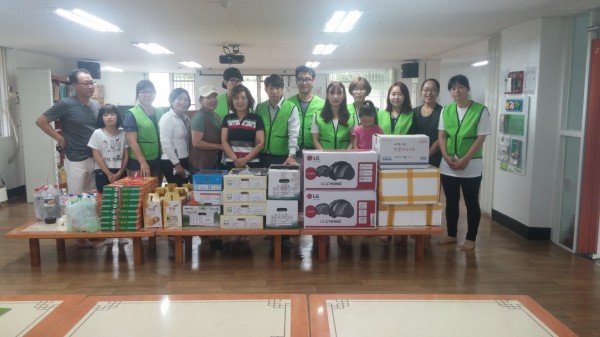 8.27일 점심에 청인천 밴드모임 및 (주) 썬라이크 최원석 대표님의 후원으로 맛있는 피자를 비롯한 여러가지 음식과 과일 ,청소기등을 후원해 주시고 갔습니다. 감사합니다.