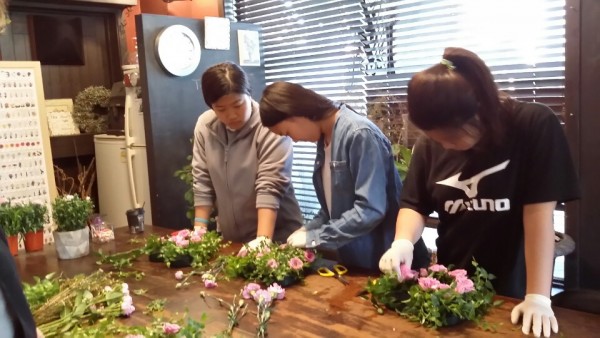 자립프로그램을 이용하여 아동들이 토마스아퀴스 라는 꽃집에서 플라워레슨을 배우며 평소 하기 힘들었던 꽃 만들기를 통하여