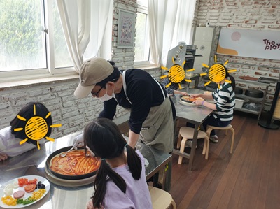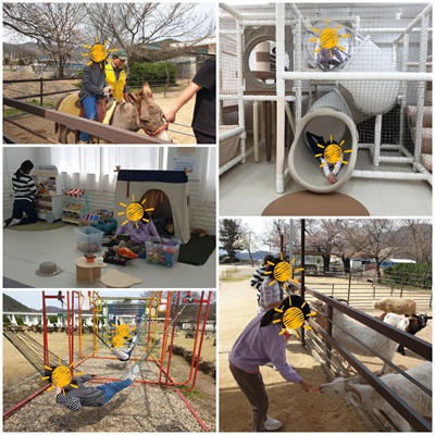 - 폐교를 리모델링 한 곳으로 넓은 운동장에서 아동들이 그네타기, 해먹에 휴식취하기, 손꼽놀이 등을 하며 놀다가, 동물 먹이주기 체험, 당나귀 타기 체험, 피자만들기 체험활동을 하고, 운동장 그늘에서, 피자만들기 체험에서 맛있게 만든 피자를 점심으로 먹음