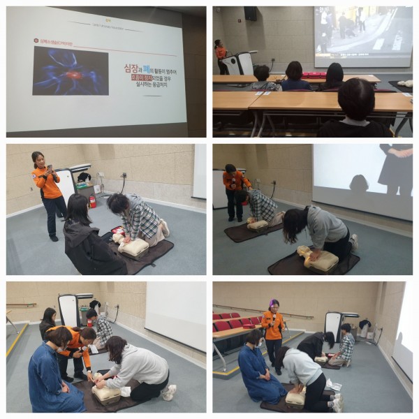 심폐소생술과 자동심장충격기에 대한 이론과 실습을 통해 소중한 생명을 지키는 방법을 배우는 시간이었습니다.