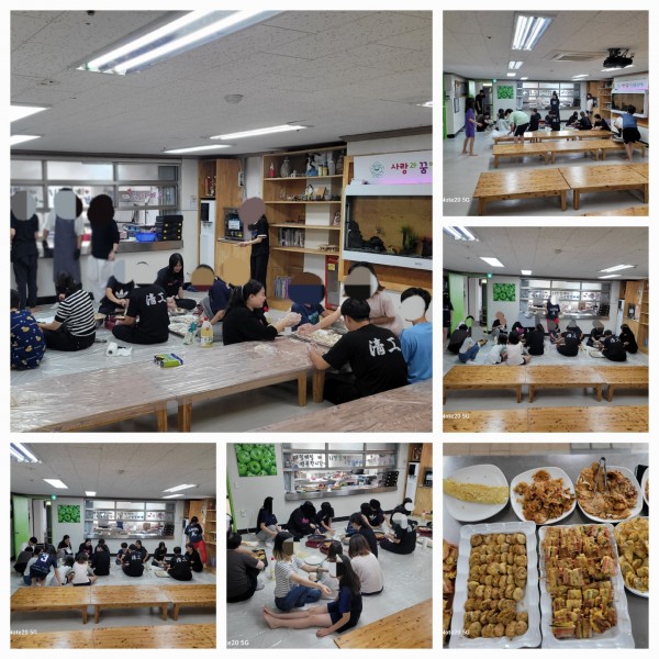 5. 내 용 : 추석 명절을 맞아 원가정 방문아동외 전체아동과 방문한 퇴소아동들이 원장님, 선생님들과 함께 식당에서 동 태 전, 김치전, 삼색전, 동그랑 땡 만들기등 맛있게 만들어서 먹으며 즐거운 추석 명절을 보냈습니다.