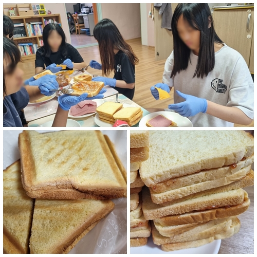 만든 샌드위치는 다른 동 아동들에게 전달하여 원 전체 맛있게 먹었습니다!