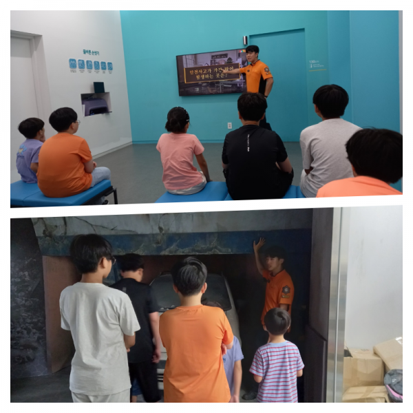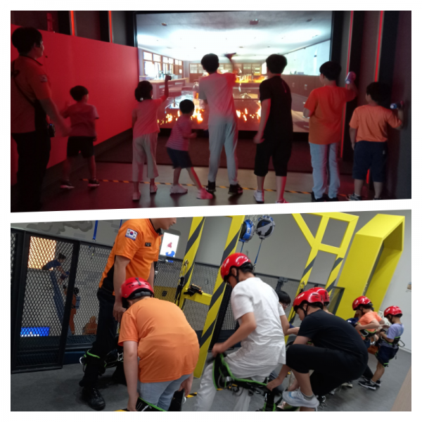 소화기 사용법과 대피방법에 대해 배웠으며 재난안전체험관에서는 생활안전과 교통안전 그리고