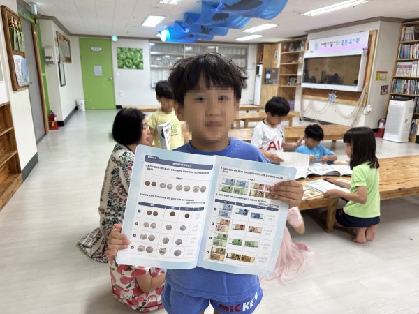 유치부는 뭉치야 물건을 살 땐 돈이 필요해 워크북을 활용하여 화폐 단위를 배워보았고