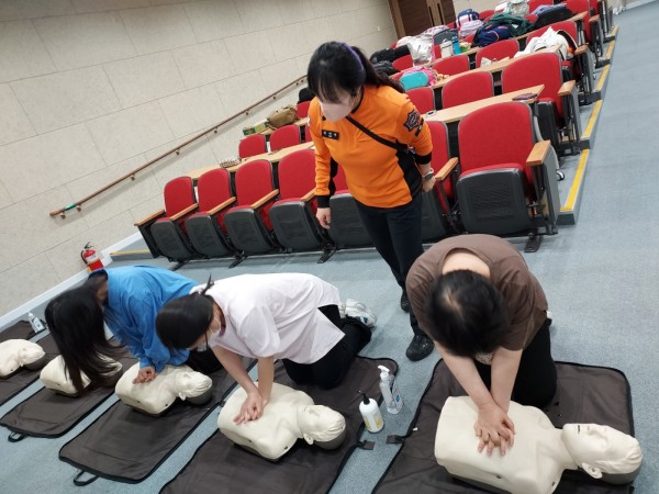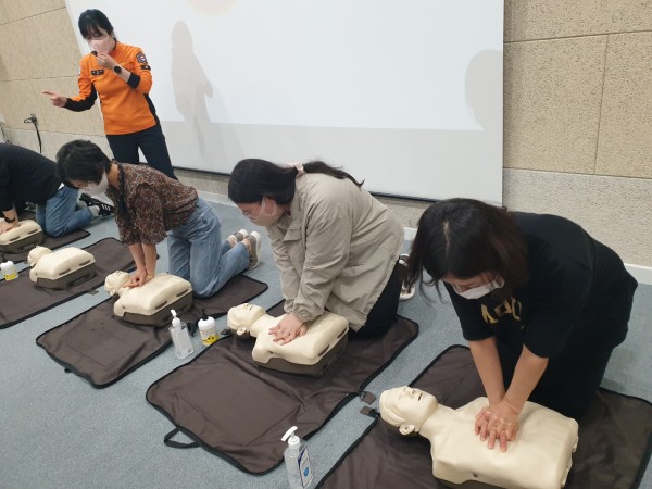 마네킹에 직접 가슴압박을 하여 올바른 자세와 대처할 수 있는 순서를 배울 수 있는 소중한 시간이 되었습니다.