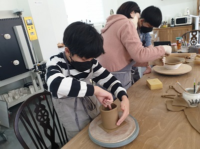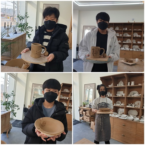 말리고 가마에 2차 굽는 과정이 있어서 완성품을 가져오지는 못했지만, 아이들 모두 신기해하기도 하고 뿌듯해 하며 만족스러운 시간을 가졌습니다. 고등학교 아이들은 자신들이 직접 만든 도자기를 자립후에도 가져 가서 사용하겠다는 애정을 드러냈습니다.