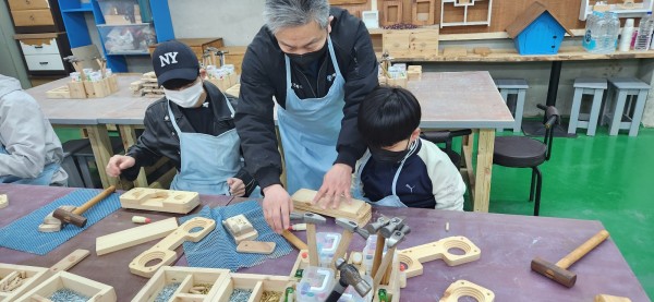 아이들이 망치로 나무를 힘껏 때리며 스트레스가 날아가는것 같다고 하네요.