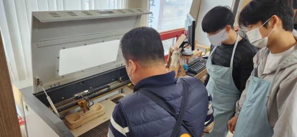 레이져로 글씨를 새기는 광경을 보며 무척 신기해 했어요.