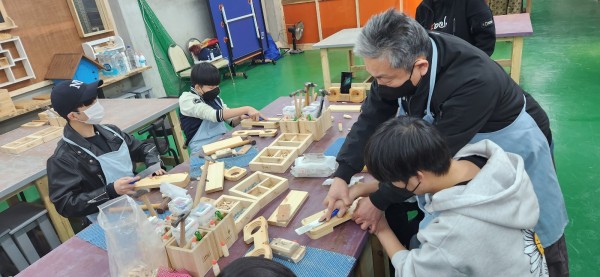 먼저한 친구들은 잘 못하는 친구들을 도와주며 멋지게 '우드 스피커'를 만들었어요.