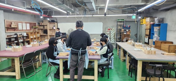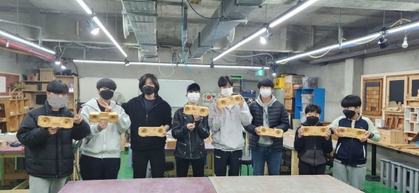 튤립동에서 목공예로 우드 스피커를 만들었어요.