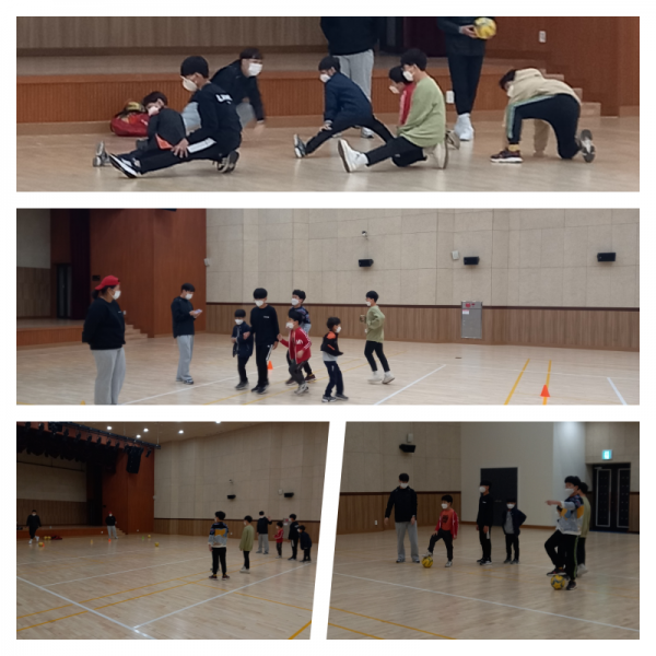 서원대 스포츠학과 대학생형들과 함께 서원대 목민관에서 준비운동하고 짝짓기 게임을 시작으로 개인적으로 공차기, 축구 활동을 신나게 하며 스트레스를 해소하며 즐거운 시간을 보내고 준비해 주신 간식을 먹으며 담소도 나누고 감사인사를 드리고 돌아왔습니다.