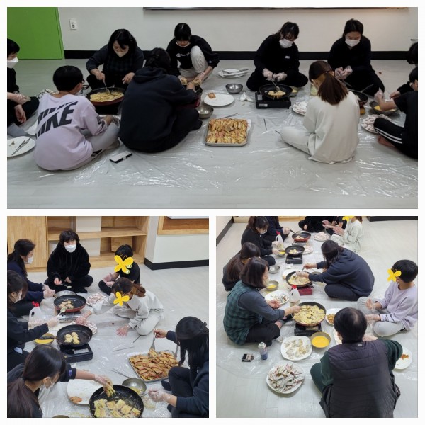 해물김치전을 만들어 시식도 하고 삼색꼬지전, 명태전, 동그랑땡 등 여러가지 예쁜 전을 만들고 맛보며 즐거운 설 명절을 맞이했습니다.