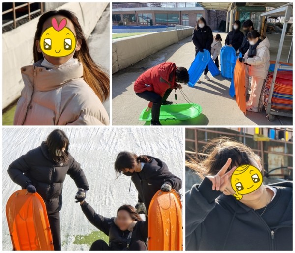겨울방학을 맞아 백합동 아이들과 함께 낭추골 눈썰매장에 다녀왔습니다.