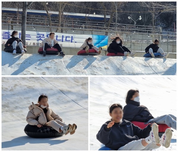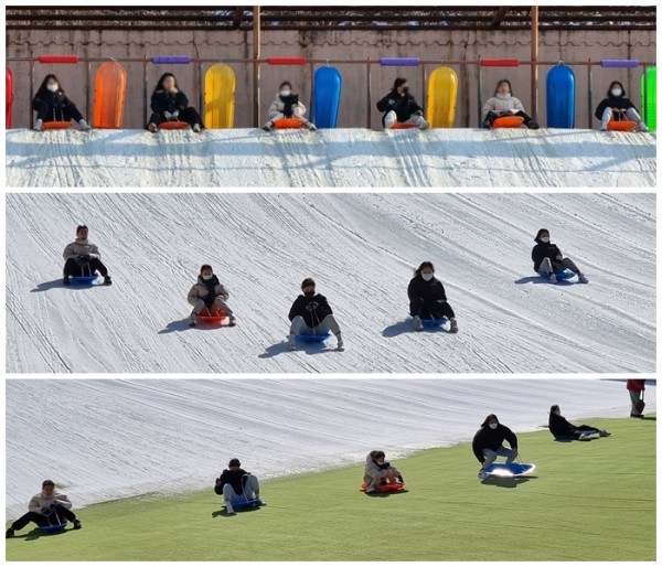 썰매와 튜브를 이용해 눈썰매를 안전하게 타는 방법을 배워