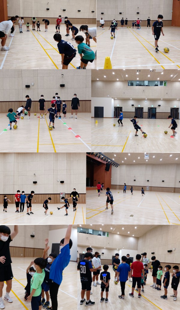 몸풀기, 기본 동작 배우기, 간식시간, 축구시합까지 맘껏 에너지 발산하며 열심히 뛰며 많이 웃는 시간이었습니다