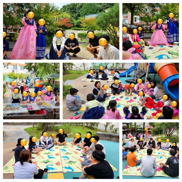 청명한 가을하늘 아래 아이들이 함께 모여 즐거운 윷놀이를 하였습니다.