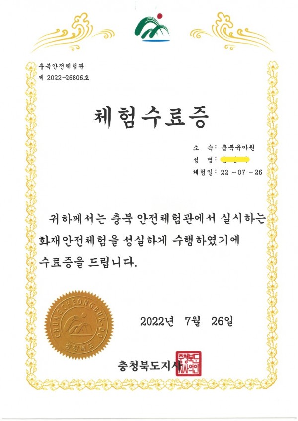 해소하고 실제 화재발생시 빠른 대처를 통한 아동들의 안전한 대피를 돕고자 충북안전체험관에서 운영하는 화재안전체험을 1차