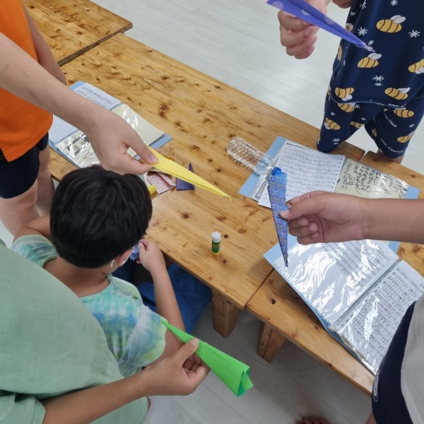 7월 문화나눔활동을 통해 영화감상을 하며 영화에 나오는 악기를 알아보고 높은음에서 낮은음으로 가는 소리를 내어보며 아카펠라를 배워보기도 하고 핸드차임 악기와 핸드벨 악기의 연주법을 배우고 고요한밤 거룩한밤, 작은별, 에델바이스 노래에 맞추어 악기를 연주해 보며 나만의 비행기 접기 시간도 가져보며 즐겁고 재미있는 시간을 보냈습니다.
