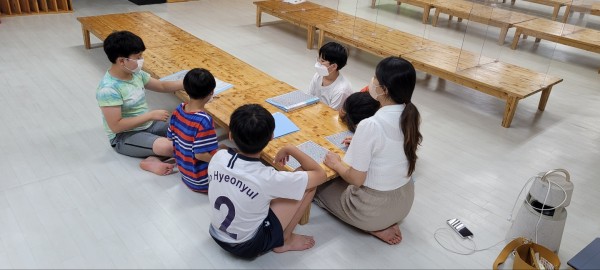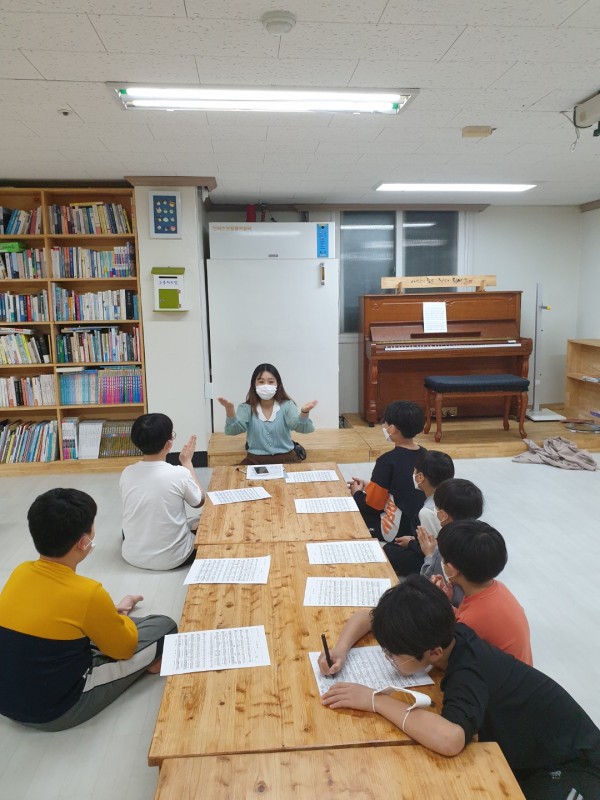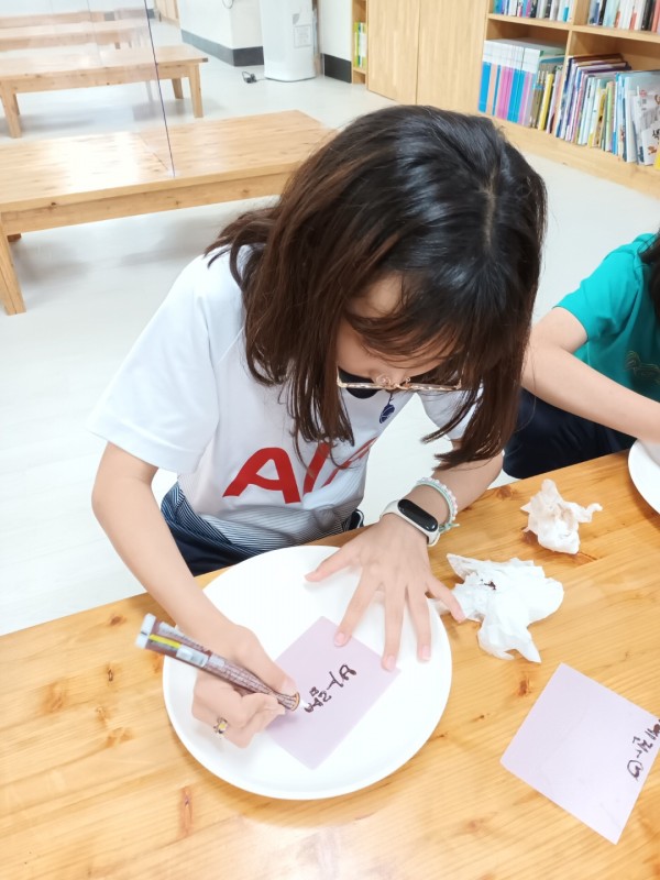 문화나눔을 통해 한달동안 초등부들이 좋아하는 '바람의 멜로디', ' 꿈꾸지 않으면, '바람의 빛깔' 노래를 배우며 노래를 잘 부를수 있도록 입모양이나 저음과 고음내는 방법, 바르게 앉아서 부르는 자세를 배우고 쵸코펜으로가사를 써보기도 하며 즐겁고 재미있는 시간을 보냈습니다.
