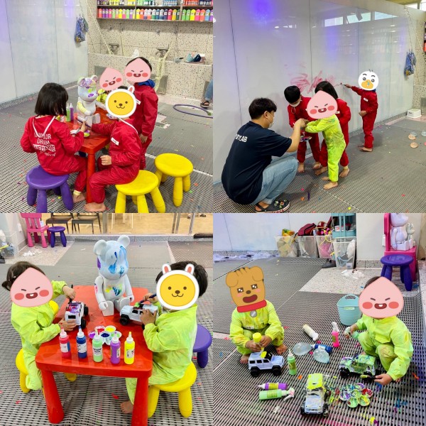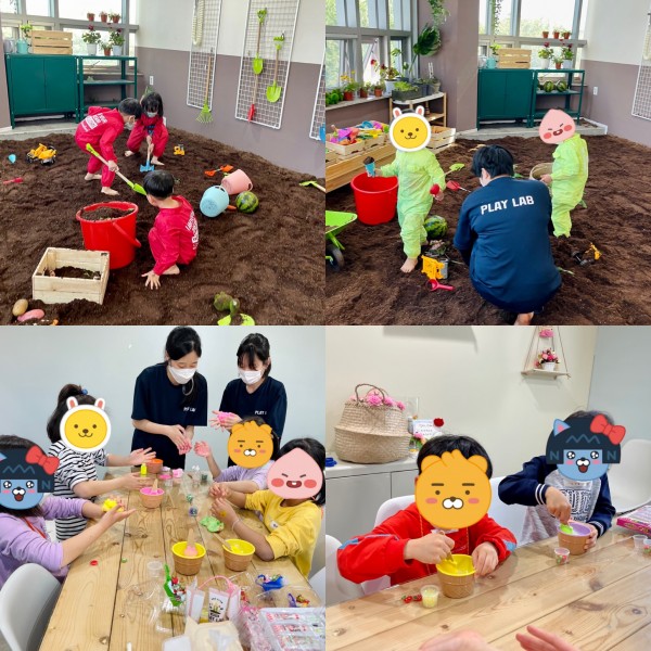 플레이랩 놀이 연구소에서 흙놀이, 물감놀이, 체육놀이, 손세정제 및 슬라임 만들기