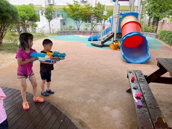 오후시간에는 물놀이를 하며 더운 여름을 시원하게 보냈습니다~