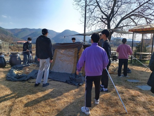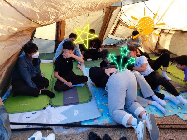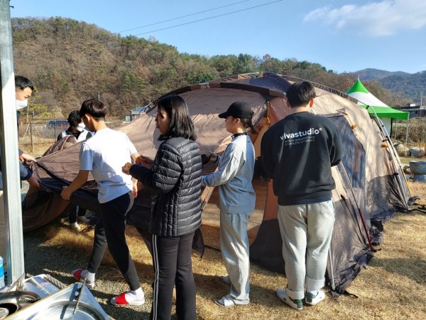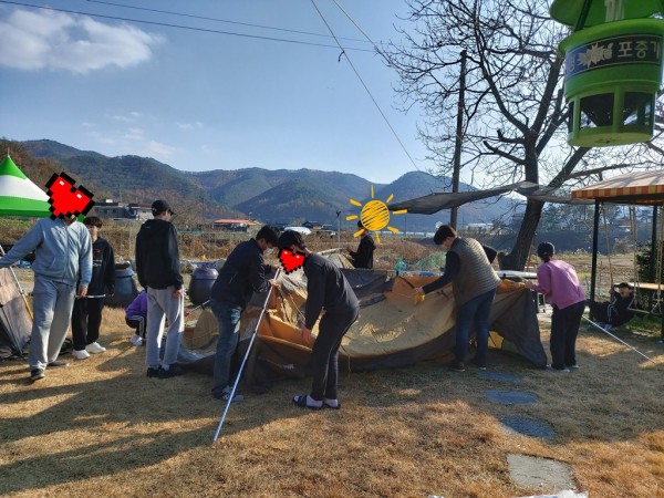 텐트치는 것도 열심히 ...게임도 열심히 ...
